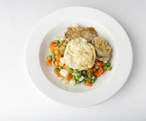 Osagaiak: Indiolar okela , Patata , Kipula , Piper berdea , Piper gorria , Azenarioa , Tomate saltsa , Maizena , Ardo zuria, Ekilore olioa, Gatza
